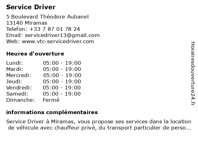 Lundi | 05:00-19:00 |