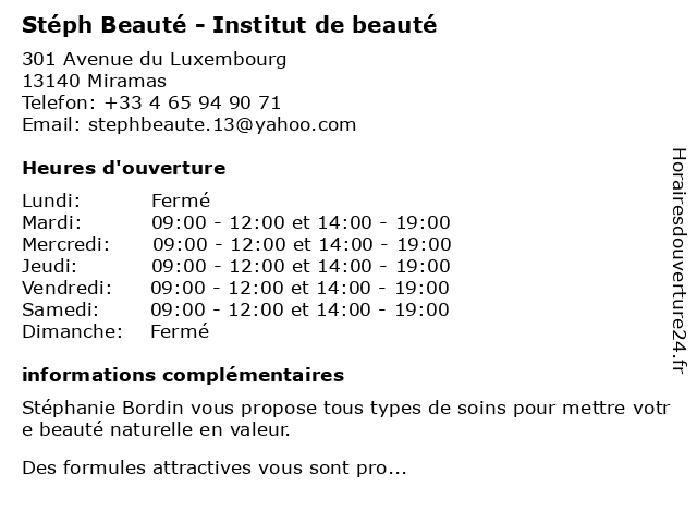 | Samedi | 09:00-12:00 et 14:00-19:00 |