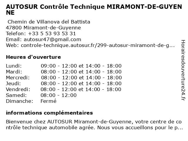 Termes de recherche pour AUTOSUR Contrôle Technique MIRAMONT-DE-GUYENNE:de, guyenne, miramont, autosur, controle, technique |