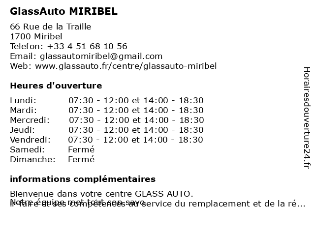 | Lundi | 07:30-12:00 et 14:00-18:30 |