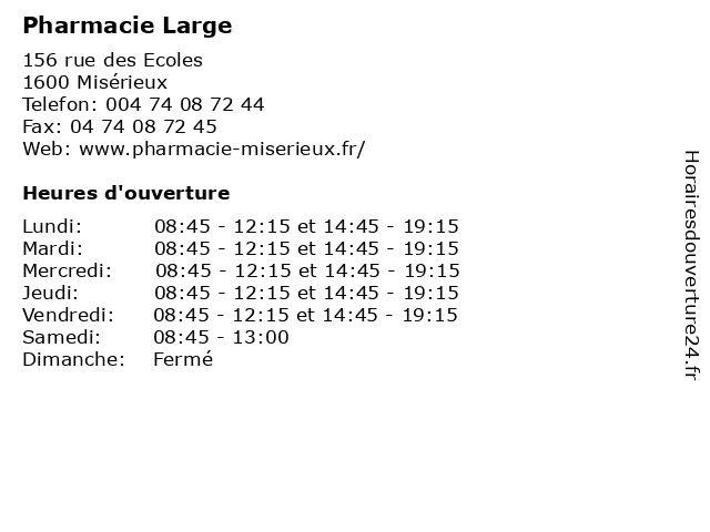 | Lundi | 08:45-12:15 et 14:45-19:15 |