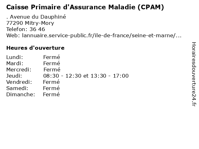 | Jeudi | 08:30-12:30 et 13:30-17:00 |