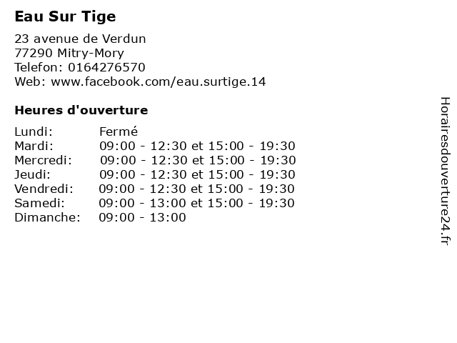 | Mardi | 09:00-12:30 et 15:00-19:30 |