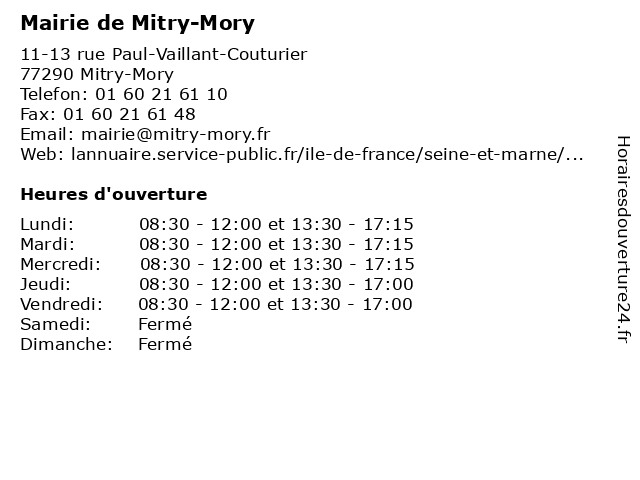 | Lundi | 08:30-12:00 et 13:30-17:15 |