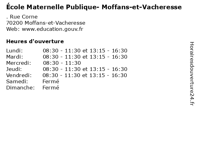 | Mardi | 08:30-11:30 et 13:15-16:30 |