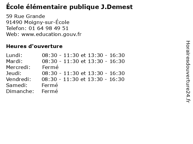 | Mardi | 08:30-11:30 et 13:30-16:30 |