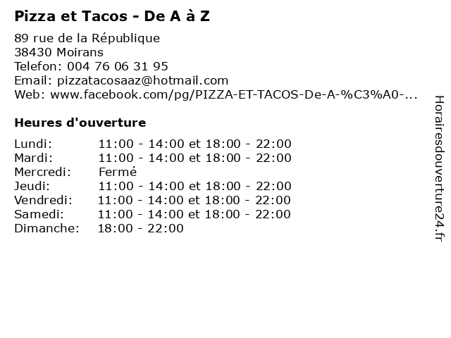 | Mardi | 11:00-14:00 et 18:00-22:00 |