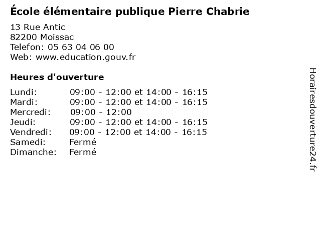 | Mardi | 09:00-12:00 et 14:00-16:15 |