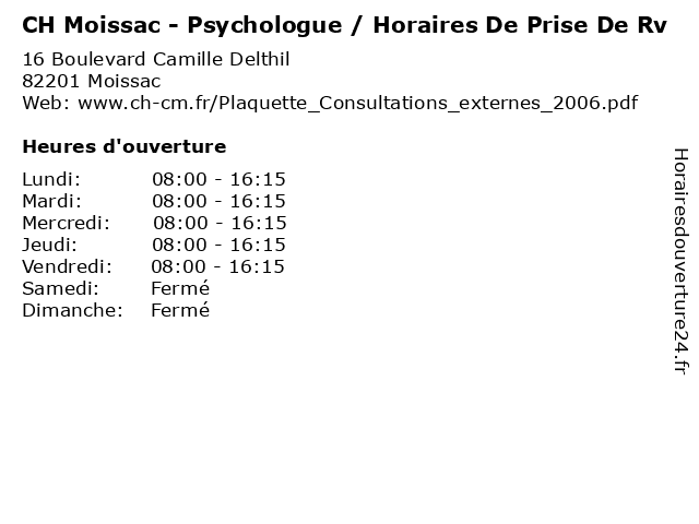 Termes de recherche pour CH Moissac - Psychologue / Horaires De Prise De Rv:de, moissac, horaires, bureau, med, medecine, maladie, rv, ch, traitement, prise, médecin, consultation, dr, pratique, psychologue, therapie |