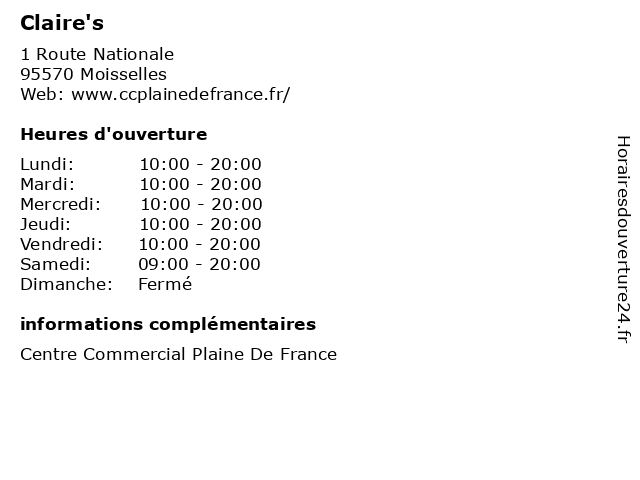 Termes de recherche pour Claire's:de, commercial, centre, plaine, france, claire's, moisselles |