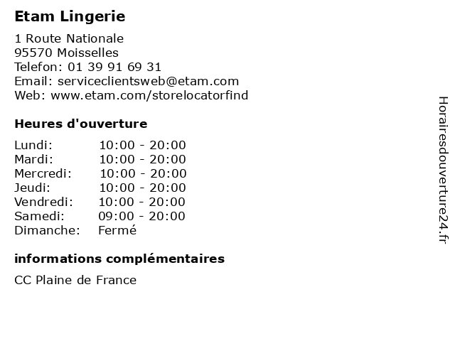 1 Etam Lingerie (Distance: 12,11 km) 108 Boulevard Victor Bordier, 95370 Montigny-lès-Cormeilles boutique, etam, féminine, lingerie 2 Etam Lingerie (Distance: 14,37 km) 4 Rue Gallieni, 92390 Villeneuve-la-Garenne etam, lingerie, mode, sous-vêtements, vêtements 3 Etam Lingerie (Distance: 15,18 km) . Le Haut de Galy, 93600 Aulnay-sous-Bois brassière, culotte, etam, lingerie, nuisette 4 Etam Lingerie (Distance: 15,53 km) 30 Rue des Buissons, 95700 Roissy-en-France etam, lingerie, lingerie et sous-vêtements, mode, mode femmes, shopping 5 Etam Lingerie (Distance: 17,79 km) 1 Chemin Des Hayettes, 95520 Osny culotte, etam, femme, lingerie, maillots de bain, prêt à porter, pyjama, soutien-gorge 6 Etam Lingerie (Distance: 18,11 km) n/a Rue de la Croix des Maheux, 95000 Cergy beauté, boutiques, déco, enfants, etam, lingerie, mode, mode femme, shopping |
