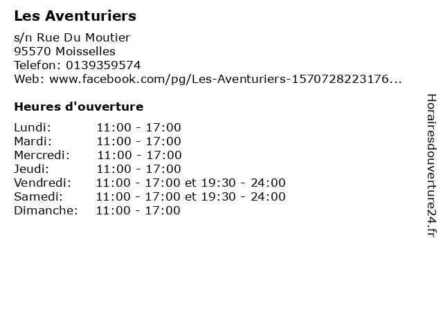 | Samedi | 11:00-17:00 et 19:30-24:00 |