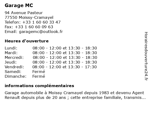 | Lundi | 08:00-12:00 et 13:30-18:30 |