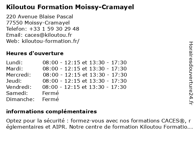 | Lundi | 08:00-12:15 et 13:30-17:30 |