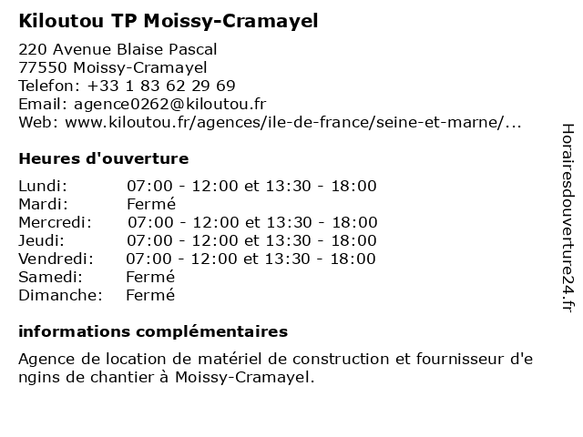 | Lundi | 07:00-12:00 et 13:30-18:00 |