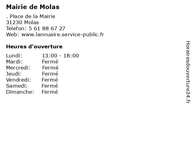 Termes de recherche pour Mairie de Molas:de, administration, mairie, assoc public, molas |