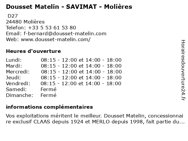 Termes de recherche pour Dousset Matelin - SAVIMAT - Molières:molières, dousset, matelin, savimat |