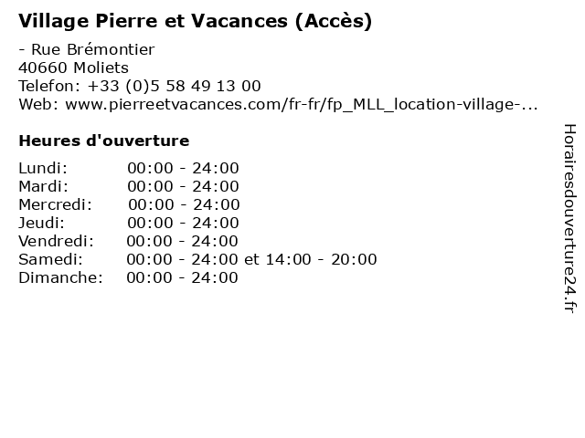 1 Village Pierre et Vacances (Réception, hors été et hiver) (Distance: 0,00 km) - Rue Brémontier, 40660 Moliets club, et, hebergement, hiver, hors, pierre, réception, tourisme, vacances, village, été 2 Village Pierre et Vacances (Réception, juillet et août) (Distance: 0,00 km) - Rue Brémontier, 40660 Moliets août, club, et, hebergement, juillet, pierre, réception, tourisme, vacances, village 3 Village Pierre et Vacances (Réception, période hivernale) (Distance: 0,00 km) - Rue Brémontier, 40660 Moliets club, et, hebergement, hivernale, pierre, période, réception, tourisme, vacances, village 4 Les Pins - Village Vacances (Distance: 4,98 km) 2747 Avenue de l' Océan, 40550 Léon landes, les, pins, restaurants, vacances, village 5 Sodistour Village Vacances Lac Marin (Distance: 7,33 km) Rue Port d'Albret, 40140 Soustons lac, marin, sodistour, vacances, village 6 Club Pinsolle (Belambra) - Accès (Distance: 7,89 km) - Avenue de la Pêtre, 40140 Soustons-Plage accès, belambra, club, hebergement, hotel, pinsolle, restauration, tourisme |