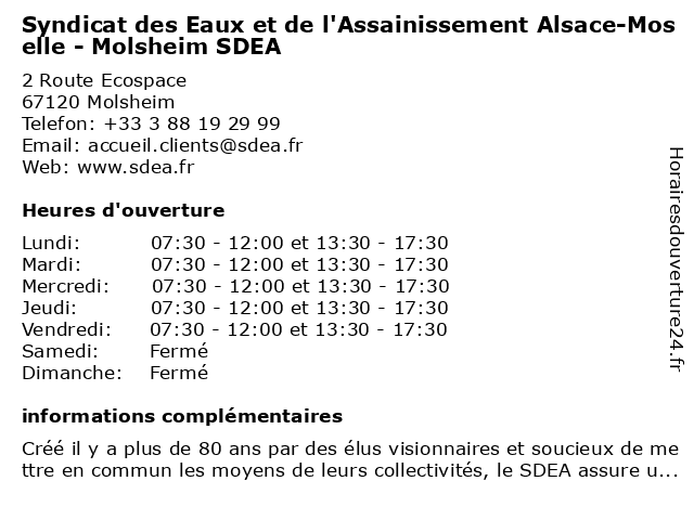 | Lundi | 07:30-12:00 et 13:30-17:30 |