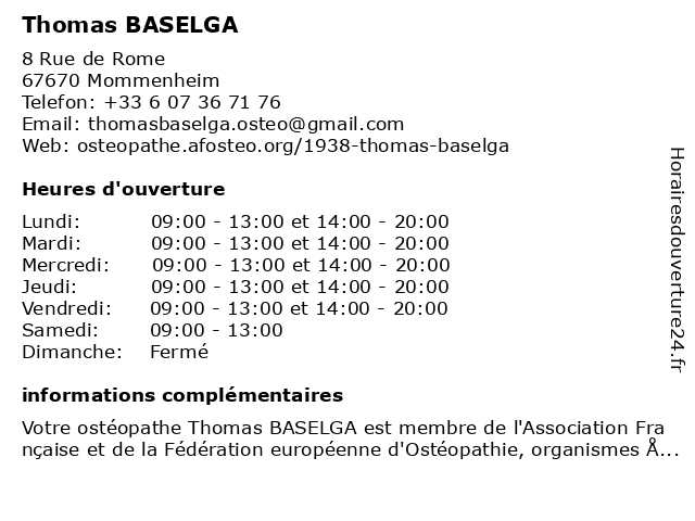 | Horaires d'ouverture | ||