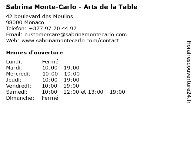 | Samedi | 10:00-12:00 et 13:00-19:00 |