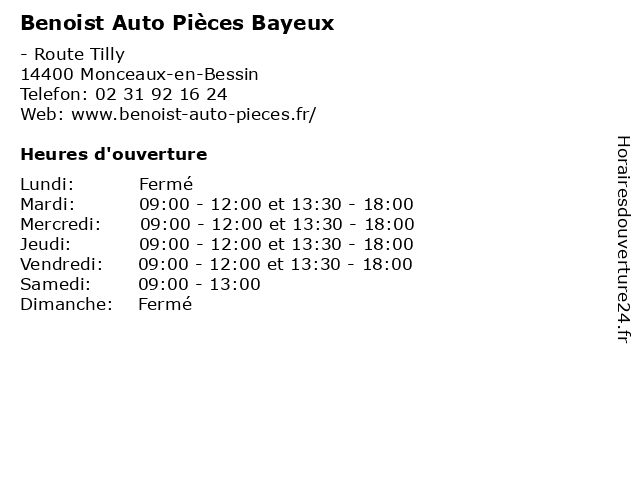 | Mardi | 09:00-12:00 et 13:30-18:00 |