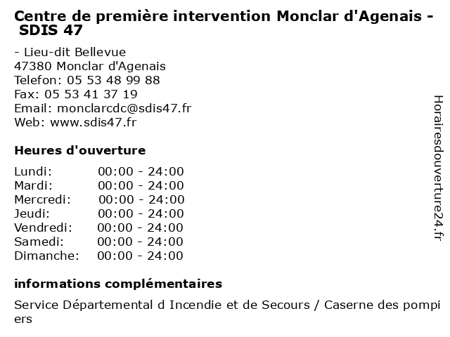 Termes de recherche pour Centre de première intervention Monclar d'Agenais - SDIS 47:de, centre, monclar, première, intervention, secours, protection, prévention, d'agenais, 47, pompier, sdis, lutte contre les incendies |