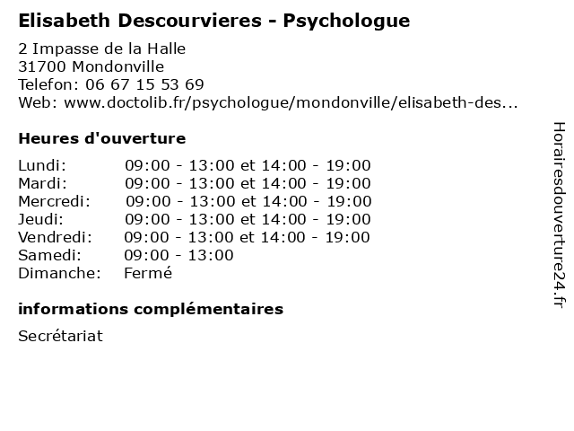 | Lundi | 09:00-13:00 et 14:00-19:00 |