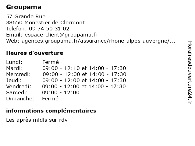Horaires d'ouverture |