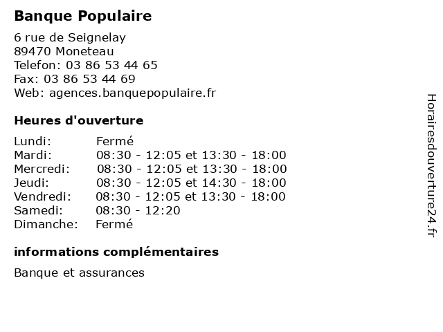 1 Banque Populaire (Distance: 6,03 km) 16-22 place des Cordeliers, 89000 Auxerre agence, assurance, bancaire, banque, populaire 2 Banque Populaire (Distance: 6,29 km) 104 rue du Pont, 89000 Auxerre agence, assurance, bancaire, banque, populaire 3 Banque Populaire (Distance: 6,44 km) 25 avenue d'Auxerre, 89000 Saint-Georges-sur-Baulche agence, assurance, bancaire, banque, populaire 4 Banque Populaire (Distance: 6,62 km) 1 Bis rue du 24 Août, 89000 Auxerre agence, assurance, bancaire, banque, populaire 5 Banque Populaire (Distance: 13,31 km) 69 avenue Jean Jaurès, 89400 Migennes agence, assurance, bancaire, banque, populaire 6 Banque Populaire (Distance: 17,01 km) 7 place Charles de Gaulle, 89800 Chablis agence, assurance, bancaire, banque, populaire |