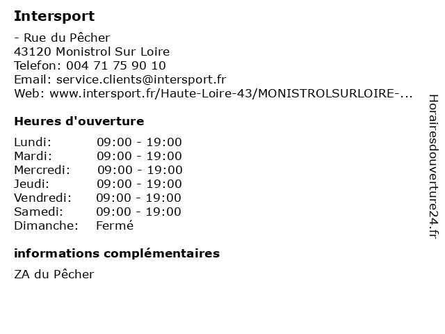 1 Intersport (Distance: 14,91 km) n/a Rue Dorian, 42700 Firminy articles, chaussures, fitness, foot, football, intersport, musculation, natation, randonnee, running, ski, sport, sportif, sports, tennis, vélos, vêtements, équipement 2 Intersport (Distance: 16,07 km) - Villeneuve, 43200 Yssingeaux articles, chaussures, fitness, foot, football, intersport, musculation, natation, randonnée, running, ski, sport, sportif, sports, tennis, vélos, vêtements, équipement 3 CrossFit Velay (Distance: 1,11 km) 36 avenue du Onze Novembre, 43120 Monistrol-sur-Loire coach, crossfit, fitness, forme, gym, musculation, sport, velay 4 Centre aquatique L'Ozen à Monistrol sur Loire (Période scolaire) (Distance: 1,46 km) - Le Mazel, 43120 Monistrol-sur-Loire aquatique, centre, l'ozen, loire, monistrol, natation sportive, piscine, période, scolaire, sportif, sur 5 Centre aquatique L'Ozen à Monistrol sur Loire (Vacances scolaires (hors vacances d'été) ) (Distance: 1,46 km) - Le Mazel, 43120 Monistrol-sur-Loire aquatique, centre, d'été, hors, l'ozen, loire, monistrol, natation sportive, piscine, scolaires, sportif, sur, vacances 6 Centre aquatique L'Ozen à Monistrol sur Loire (Vacances d'été) (Distance: 1,46 km) - Le Mazel, 43120 Monistrol-sur-Loire aquatique, centre, d'été, l'ozen, loire, monistrol, natation sportive, piscine, sportif, sur, vacances |