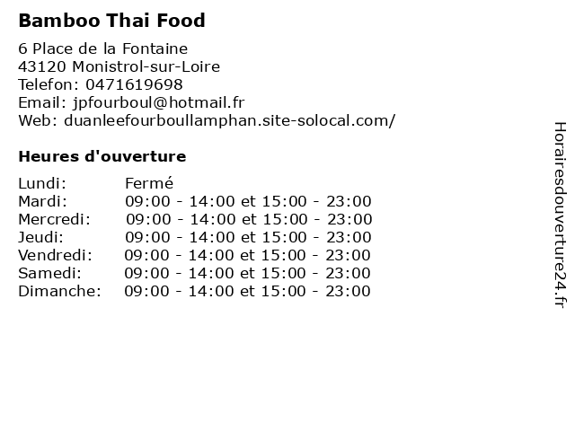 Termes de recherche pour Bamboo Thai Food:restaurant, alimentation, food, brasserie, thai, terrasse, parking, bamboo |