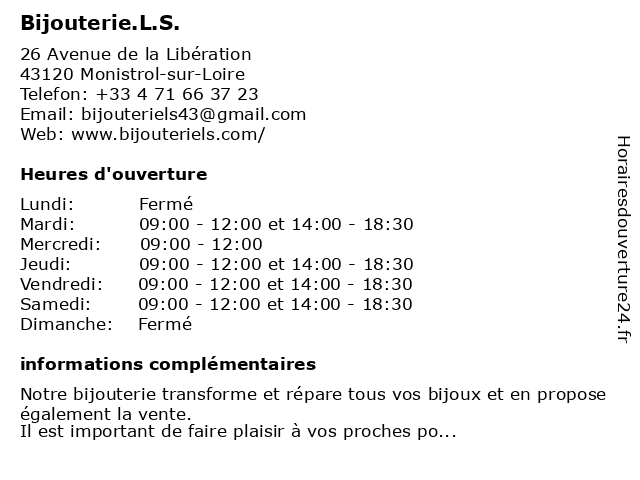 | Samedi | 09:00-12:00 et 14:00-18:30 |