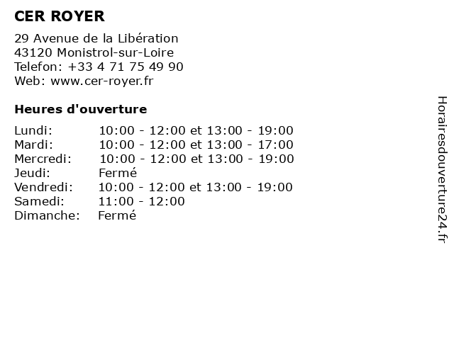 | Mercredi | 10:00-12:00 et 13:00-19:00 |