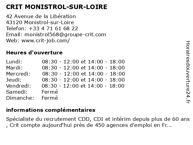 Termes de recherche pour CRIT MONISTROL-SUR-LOIRE:sur, loire, monistrol, crit |