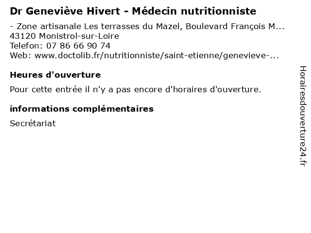 | Appeler Dr Geneviève Hivert - Médecin nutritionniste | |