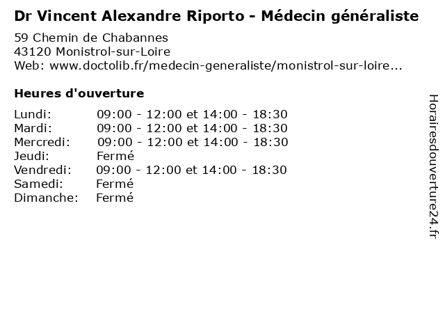 | Lundi | 09:00-12:00 et 14:00-18:30 |