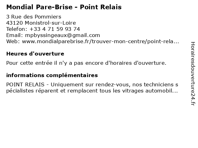 | Appeler Mondial Pare-Brise - Point Relais | |
