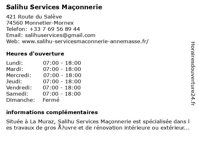1 Maçonnerie Vidonne (Distance: 11,10 km) 45 Impasse de la Vernaz, 74800 La Roche-sur-Foron maçonnerie, vidonne 2 Nicolas Gomes Maçonnerie (Distance: 11,69 km) Route des Voirons, 74140 Machilly gomes, maçonnerie, nicolas 3 Maçonnerie Générale Ozbahar Mehmet (Distance: 13,27 km) 25 Route de Thairy, 74160 Saint-Julien-en-Genevois générale, maçonnerie, mehmet, ozbahar 4 Maçonnerie Daniel Pinto (Distance: 14,75 km) 290 Rue des Tanières, 74890 Bons-en-Chablais daniel, maçonnerie, pinto 5 KPF KOTUGORMEZ (Distance: 3,21 km) 26 Avenue de la Gare, 74100 Annemasse aménagements extérieurs, aménagements intérieurs, charpente, couverture, entreprise générale de bâtiment en haute-savoie, gros å?uvre, kotugormez, kpf, maisons ossature bois, maçonnerie, zinguerie 6 RICQUER LOIC JEAN-MARIE ETIENNE JACQUES (Distance: 12,52 km) 420 Route du Thy, 74250 Viuz-en-Sallaz aménagement extérieur, aménagement intérieur, etienne, jacques, jean, loic, marie, maçon en haute-savoie, maçonnerie générale, ricquer, rénovation |