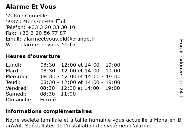 | Lundi | 08:30-12:00 et 14:00-19:00 |