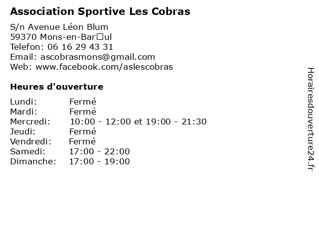 | Mercredi | 10:00-12:00 et 19:00-21:30 |