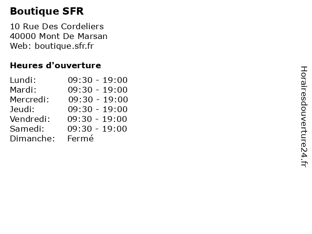 | Lundi | 09:30-19:00 |