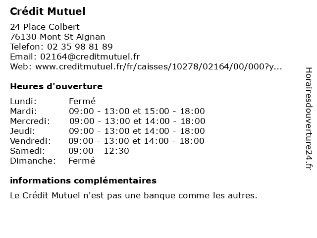 | Mardi | 09:00-13:00 et 15:00-18:00 |