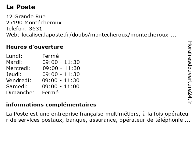 1 La Poste (Distance: 1,99 km) - Rue de l'Église, 25190 Chamesol express chronopost, la, poste, réexpédition internationale 2 La Poste (Distance: 3,55 km) 4 Place de l'Hôtel de Ville, 68590 Saint Hippolyte ap, express chronopost, hippolyte, la, poste, réexpédition internationale, saint 3 La Poste (Distance: 3,73 km) 2 Rue de Dampjoux, 25190 Villars-sous-Dampjoux express chronopost, la, poste, réexpédition internationale 4 La Poste (Distance: 5,60 km) - Mairie, 25310 Roches lès Blamont express chronopost, la, poste, réexpédition internationale 5 La Poste (Distance: 8,94 km) 6 Rue de la Mairie, 25190 Vaufrey express chronopost, la, poste, réexpédition internationale 6 |
