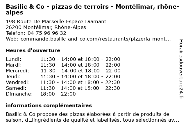 Termes de recherche pour Basilic & Co - pizzas de terroirs - Montélimar, rhône-alpes:de, montelimar, co, alpes, rhone, fast-food, pizzas, terroirs, basilic |