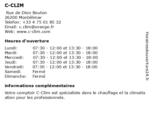 Lundi | 07:30-12:00 et 13:30-18:00 |