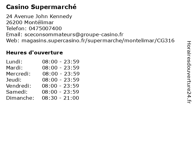 1 Géant Casino Station Service (Distance: 0,02 km) 24 Avenue Kennedy, 26200 Montélimar automobiles, casino, géant, oil, service, services, station, stations essences 2 Vival by Casino (Distance: 0,83 km) 1 Rue Etienne Marcel, 26200 Montelimar by, casino, droguerie, d’hypermarchés, frais, fruits et légumes, hygiène, parfumerie et autres produits non alimentaires., surgelés, vival, épicerie 3 Petit Casino (Distance: 0,98 km) 56-58 Avenue Jean Jaurès, 26200 Montélimar alimentation, casino, fruits, fégumes, marché, petit, superette, épicerie 4 Casino Restauration (Distance: 2,73 km) Route De Marseille, 26200 Montelimar casino, restaurants, restauration 5 Casino Cafétéria (Distance: 2,80 km) n/a Rond-Point des Présidents, 26200 Montelimar cafeteria, cafétéria, casino, foods, kids, restaurants 6 Petit Casino (Distance: 11,13 km) - Place de la Poste, 07400 Alba-la-Romaine alimentaire, alimentation, casino, courses, distributeur, distribution, grande, hypermarché, le, petit, supermarché, supérette, épicerie |