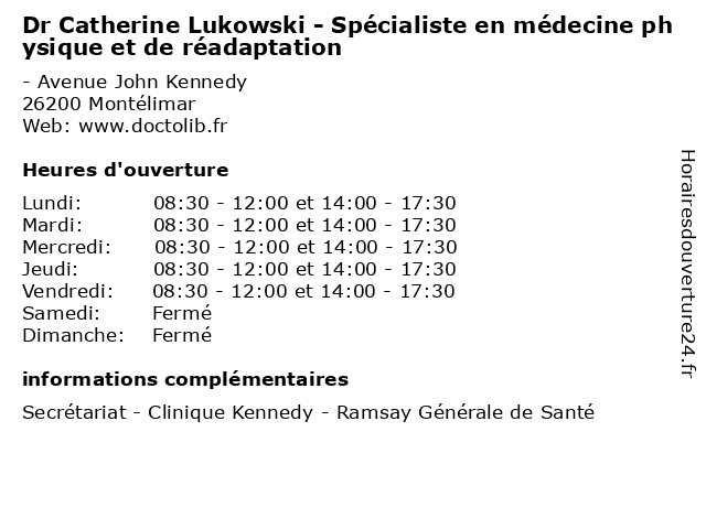 | Lundi | 08:30-12:00 et 14:00-17:30 |