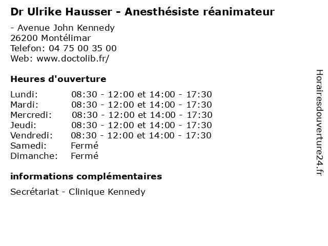 | Lundi | 08:30-12:00 et 14:00-17:30 |