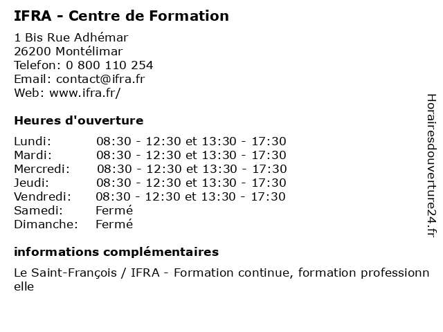 | Mercredi | 08:30-12:30 et 13:30-17:30 |
